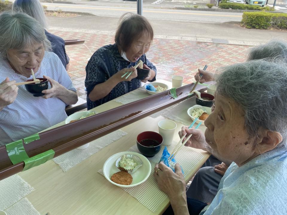 はま寿司会 お寿司の日は、利用者の皆さんの毎月恒例の楽しみになっています。「はま寿司」でテイクアウトした新鮮で美味しいお寿司は、利用者の皆様に大好評。毎回「美味しい!」という笑顔があふれ、あっという間に完売します。この特別なイベントを通じて、食事の楽しみと季節の彩りを皆様にお届けしています。