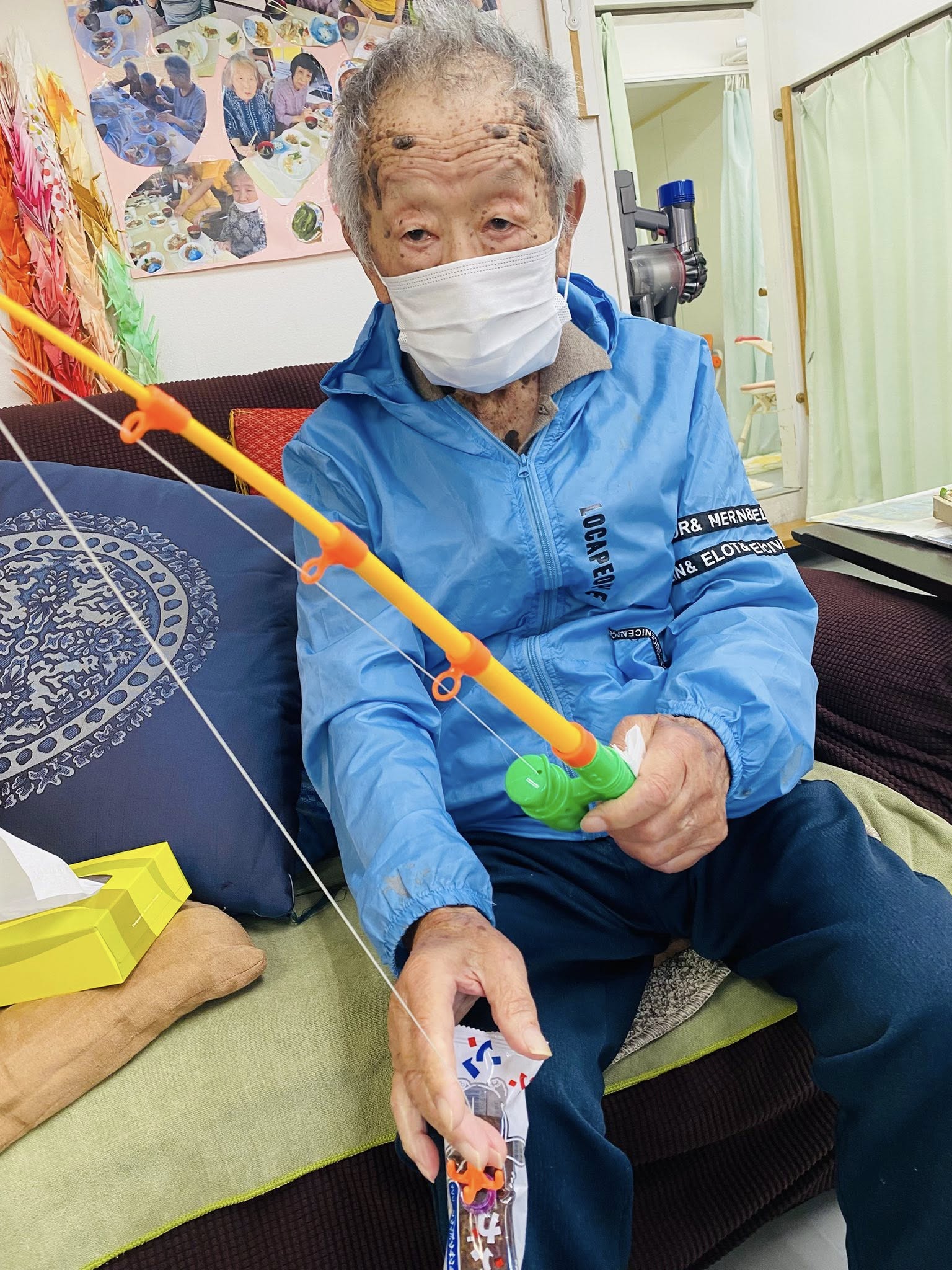 お菓子釣りゲーム 「お菓子釣りゲーム」は、笑顔があふれる人気のレクリエーションで、お目当てのお菓子を狙って楽しそうに挑戦されます。つかみ取りや釣りを通じて、童心に返ったようなひとときをお届け。お気に入りのお菓子をゲットする喜びとともに、和やかな時間を共有しています。